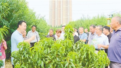 26日上午,全体学员走进中国农业科学院郑州果树研究所试验基地。王新卫边走边讲,对比“春雪”“中油蟠9号”“夏甜”等10余个品种长势,手把手示范疏枝、长梢修剪、拉枝开角等标准化操作,使学员在果园中把知识转化为技能。