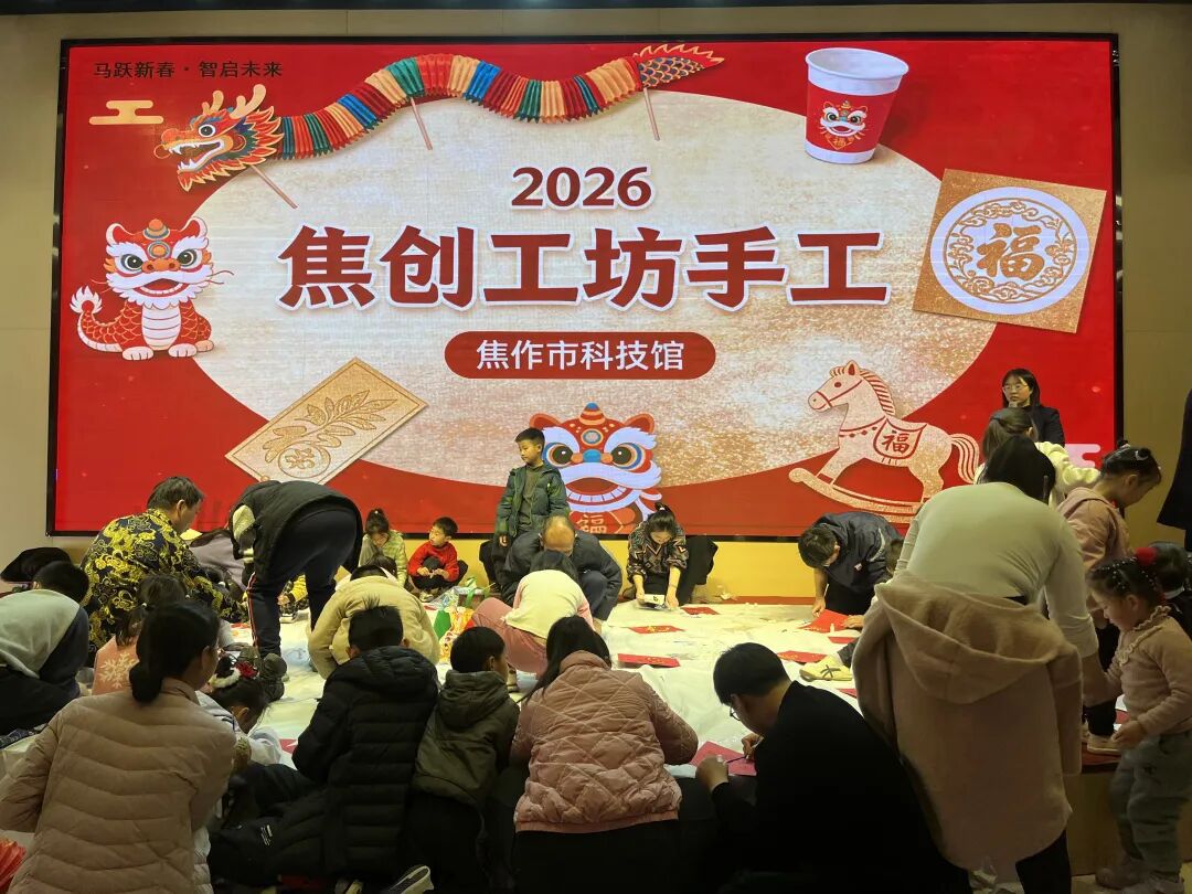 焦作市科技馆的“非遗市集”成为新春打卡地,国家级、省级非遗传承人亲临现场,绞胎瓷制作、山阳剪纸、四大怀药炮制等技艺展示让观众近距离感受传统匠心,拓印、剪纸等体验活动排起长队,孩子们在家长的陪伴下拓印福字、裁剪窗花,感受非遗魅力;焦创工坊推出新春金箔画、皮影戏制作等手作活动,让观众了解了金箔贴制工艺、皮影光学原理。