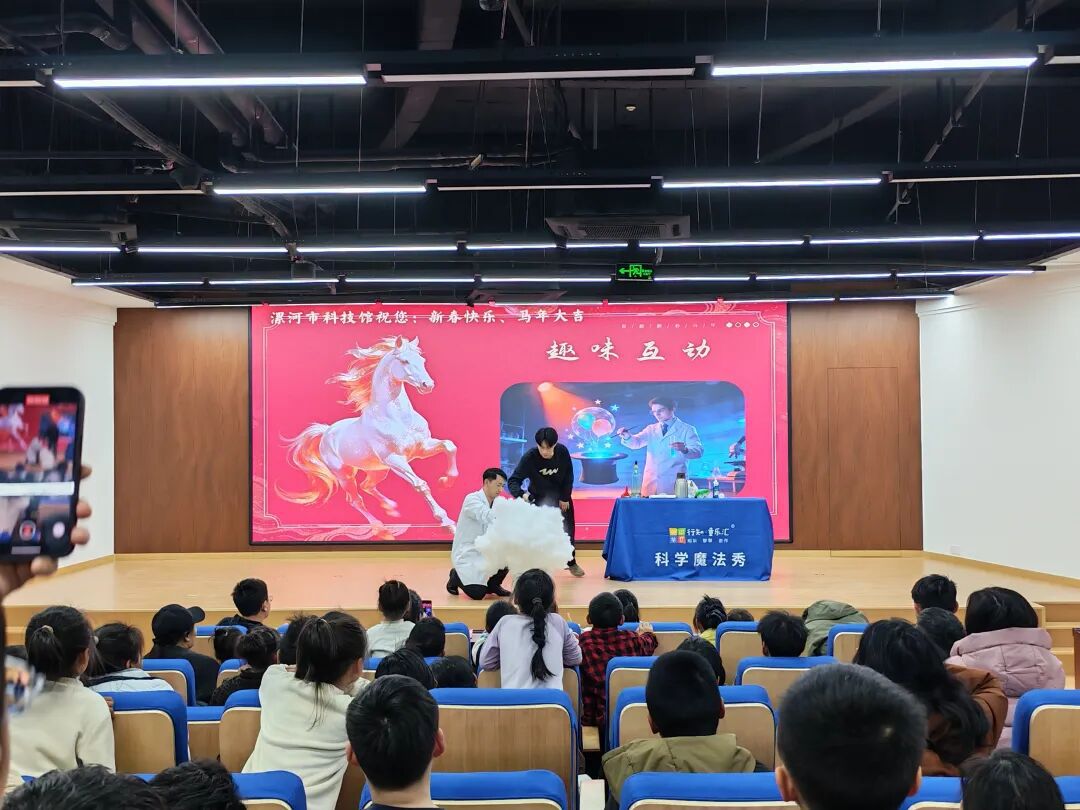漯河市科技馆推出“龙马启智・科耀新春——马年科普嘉年华”主题活动。在“皮影戏——光影艺术与光学奥秘”活动中,科普辅导员讲解皮影戏的光学原理,让孩子们亲手操控马形皮影,感受光影变化,了解成像科学;在“科学魔法秀——沉浸式实验展演”中,科普辅导员通过“银花迎春”实验,让孩子们感受非遗背后的热学与氧化原理。